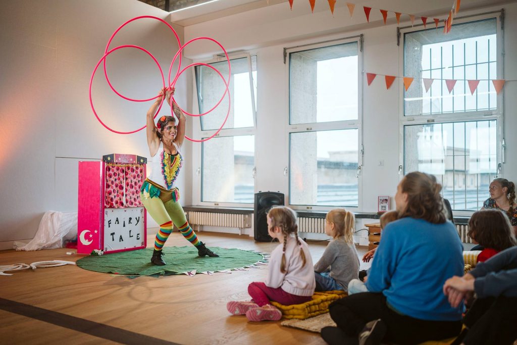 Kinder und Erwachsene können Hula-Hoop, Jonglier-Tools oder kleine Akrobatikübungen selbst ausprobieren – für Spaß, Bewegung und unvergessliche Momente. Link zum Workshop Seite