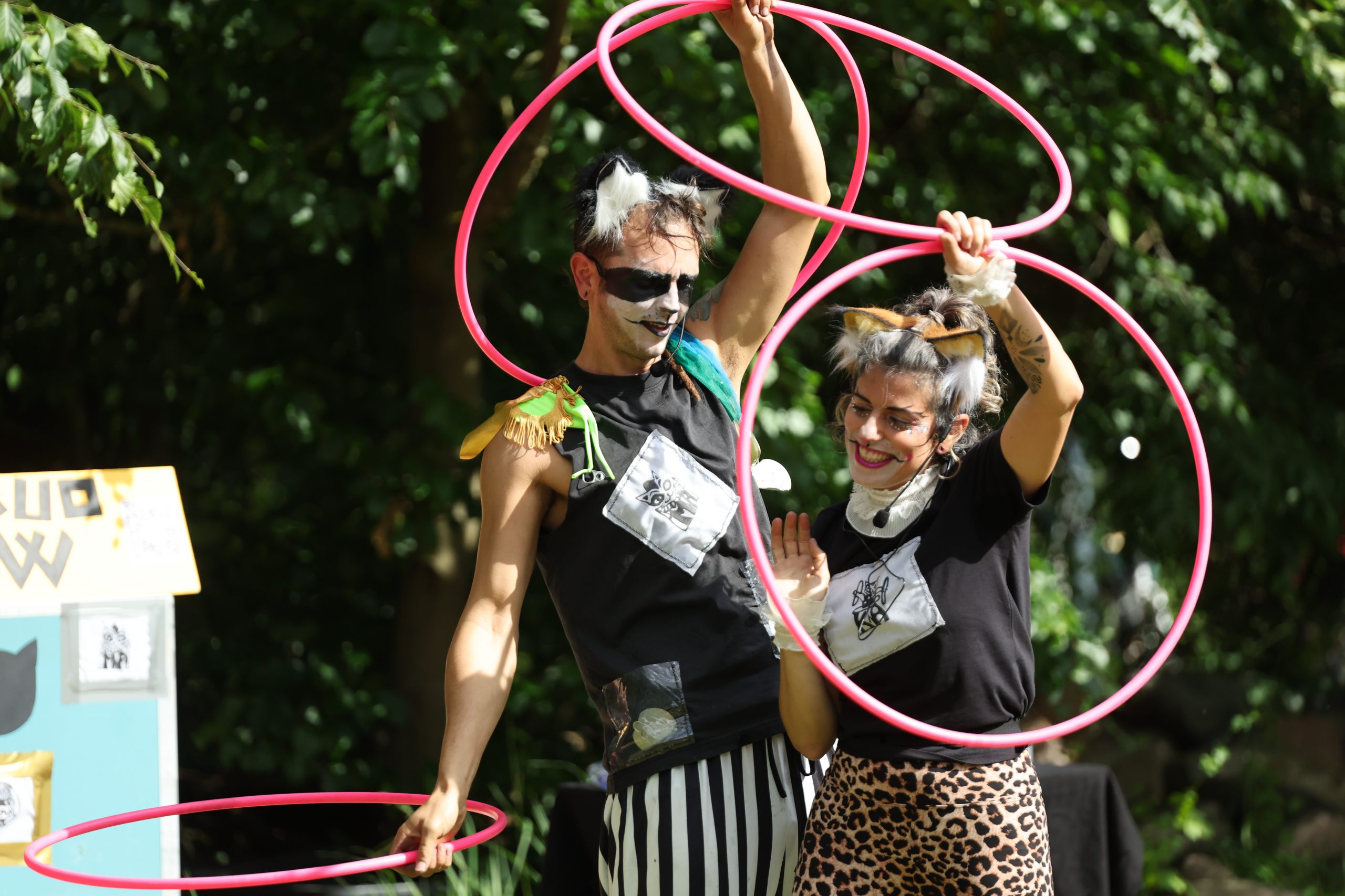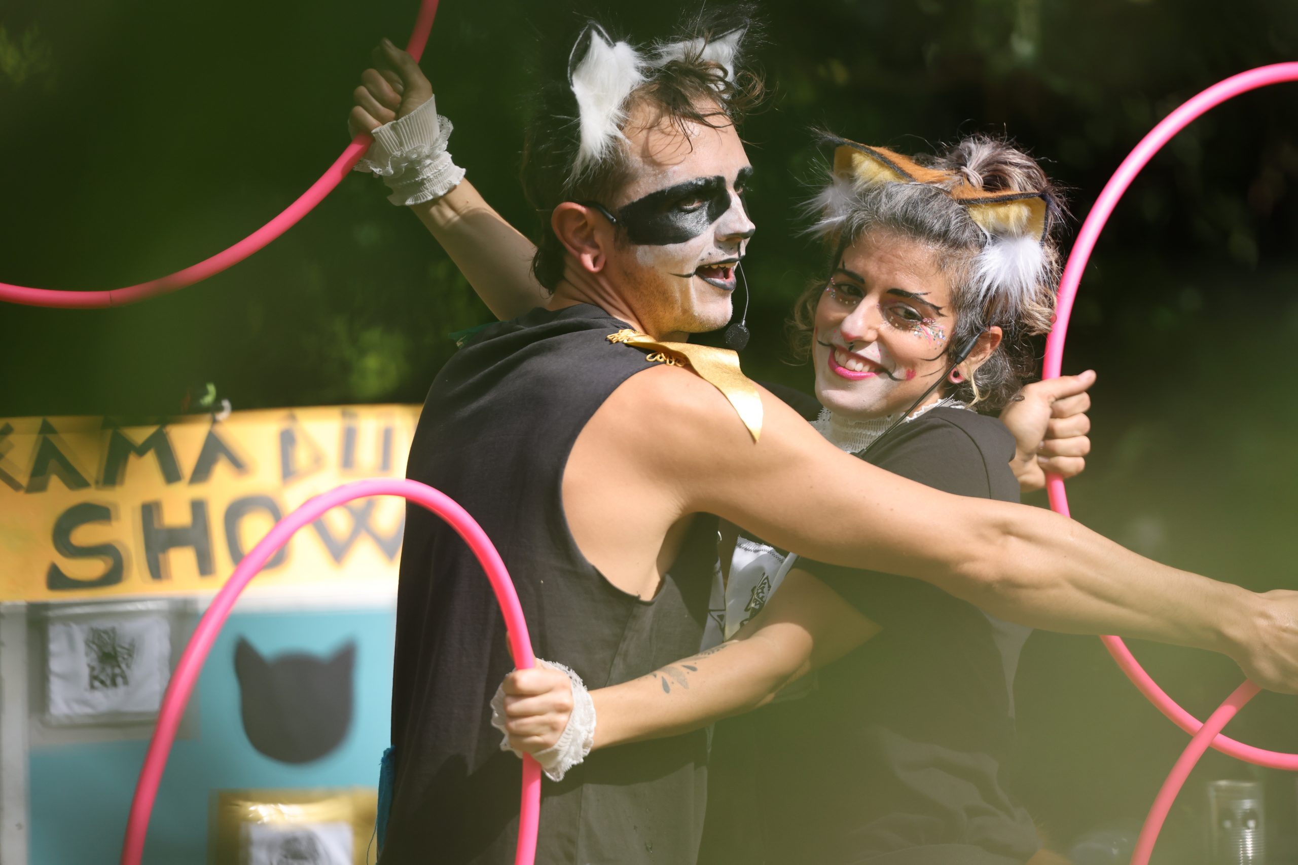 „Müllmiau & Saubär“ ist eine originelle Show, die Comedy, Clownerie und Zirkuskunst mit einem Augenzwinkern in Sachen Umwelt verbindet. In dieser energiegeladenen 20-minütigen Performance treffen sich Chaos und Ordnung, Müll und Glanz – und natürlich Katze und Bär.